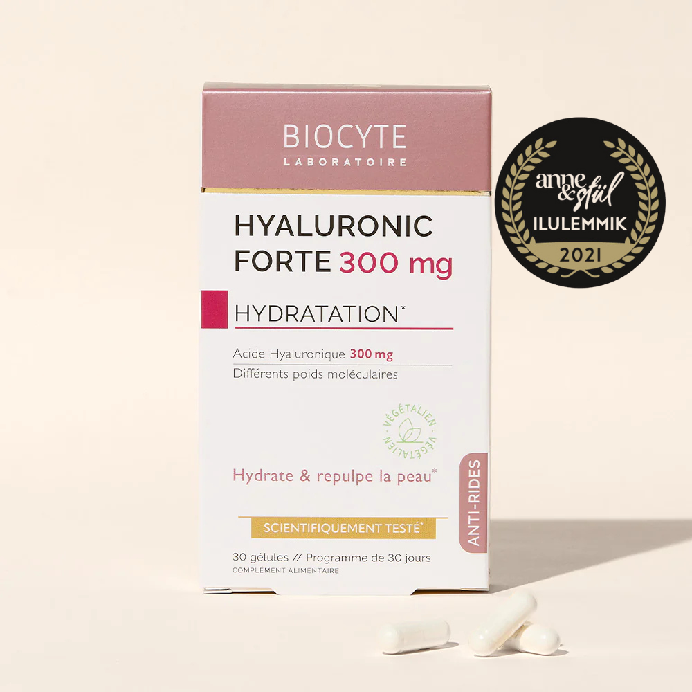 Hüaluroonhape on naha oluline komponent, mis annab talle täiusliku, pehme ja niisutatud välimuse. Tänu oma väga kontsentreeritud valemile vähendab Biocyte Hyaluronic Forte® kortsude sügavust, parandab naha elastsust ja niisutatust juba pärast 1 kuu kasutamist.