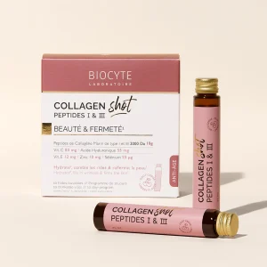 Biocyte Collagen Shot on kirsimaitseline joodav toidulisand, mis tänu merelisele kollageenile ja hüaluroonhappele täidab kortse ja pinguldab nahka. Täielik kooslus, mis sisaldab 10 g patenteeritud Naticoli I ja III tüüpi kollageeni, mille efektiivust on tõestatud mitmete uuringutega ning mille tarbimise tulemusena on tuntud +22,8% naha niisutatust, +23,7% elastsuse tõusu ja -9,4% kortsude vähenemist.